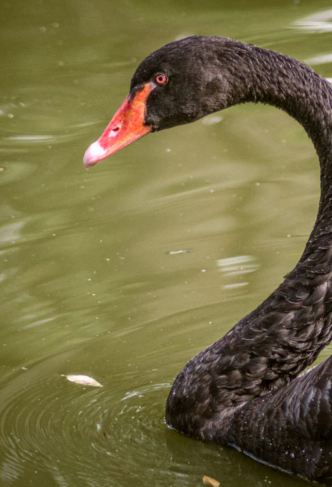 Medium-sized swan with black plumage, with a body weight of between 8 to 19 lbs., With males being larger than females. The beak of this bird is red, they inhabit fresh or salt water lakes. It feeds mainly on aquatic vegetation and occasionally on small animals. It is a sociable bird that can gather in large groups, it is not migratory, however, it can travel long distances.