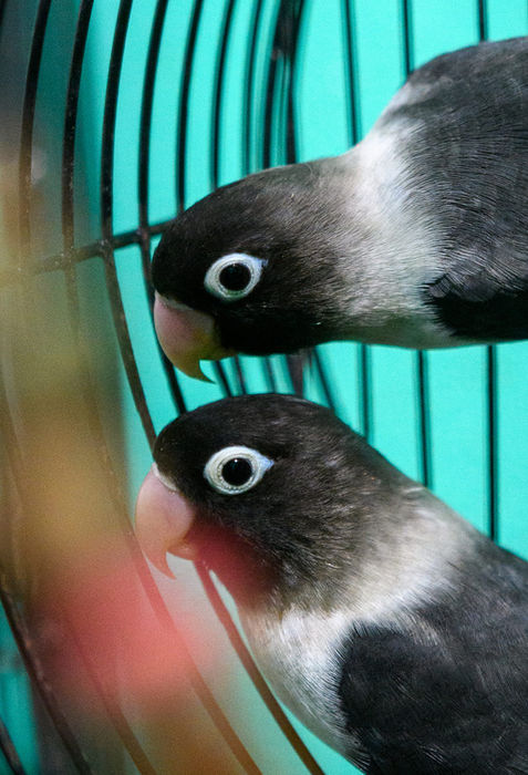 Its average size is 15 cm and a weight of approximately 50 grams. The predominant color of its plumage is green. A salmon-pink color is common on the part of its head. The female usually has a larger head and the color of her plumage is usually paler compared to a male lovebird. The legs of the Agapornis roseicollis do not have feathers, their beak is voluminous and they have very strong wings. Its diet is herbivorous, based on seeds, pipes and complemented with fresh vegetables.